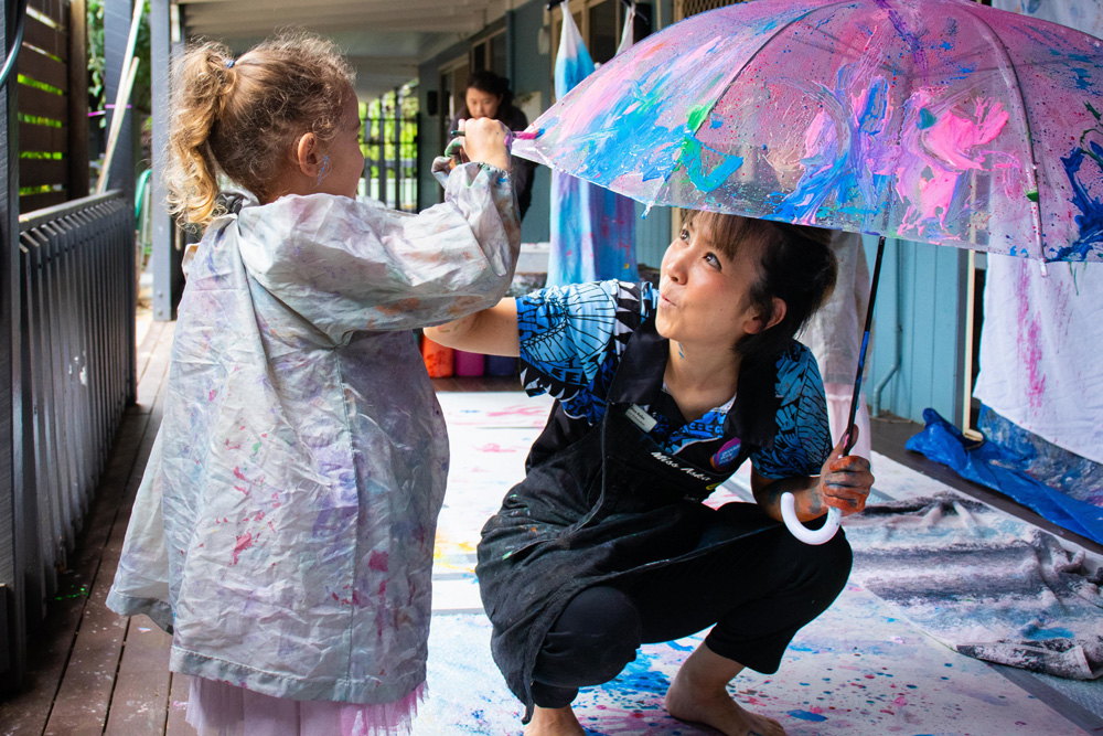 Art and craft helps to foster the children’s artistic expression and fine motor development; and in the outdoor environment, littlies can think big and explore lots of different mediums.