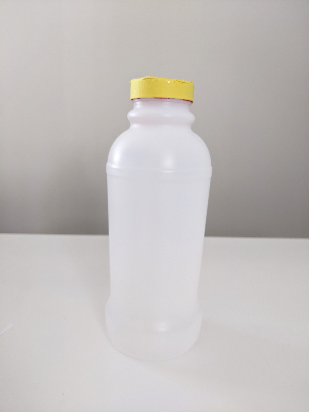 Remove the label, wash the bottle and cap well, and leave to dry.