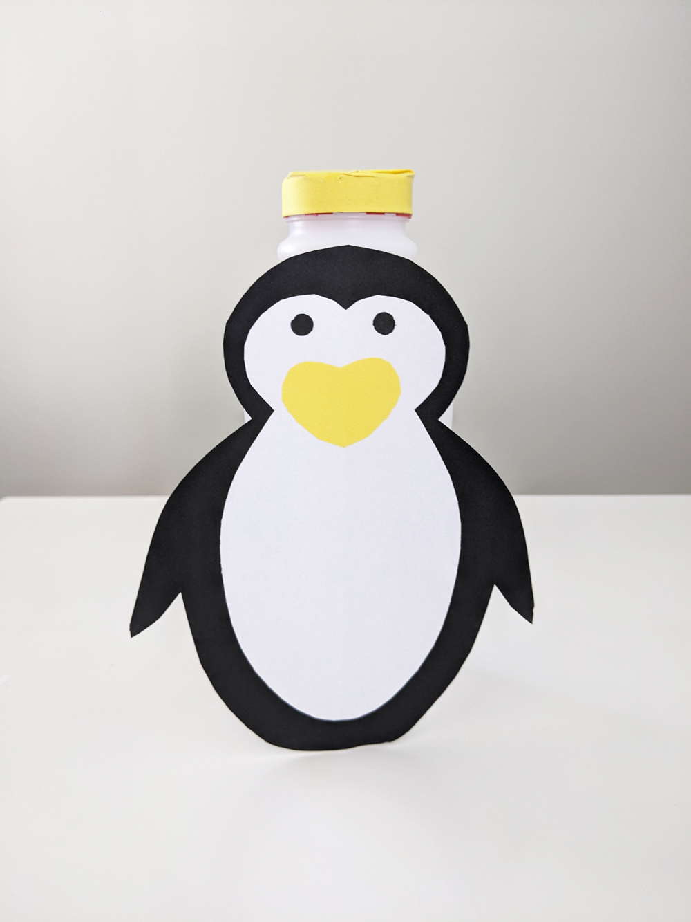 Then glue yellow paper onto the lid to match the penguin you’ll make in Step 3.