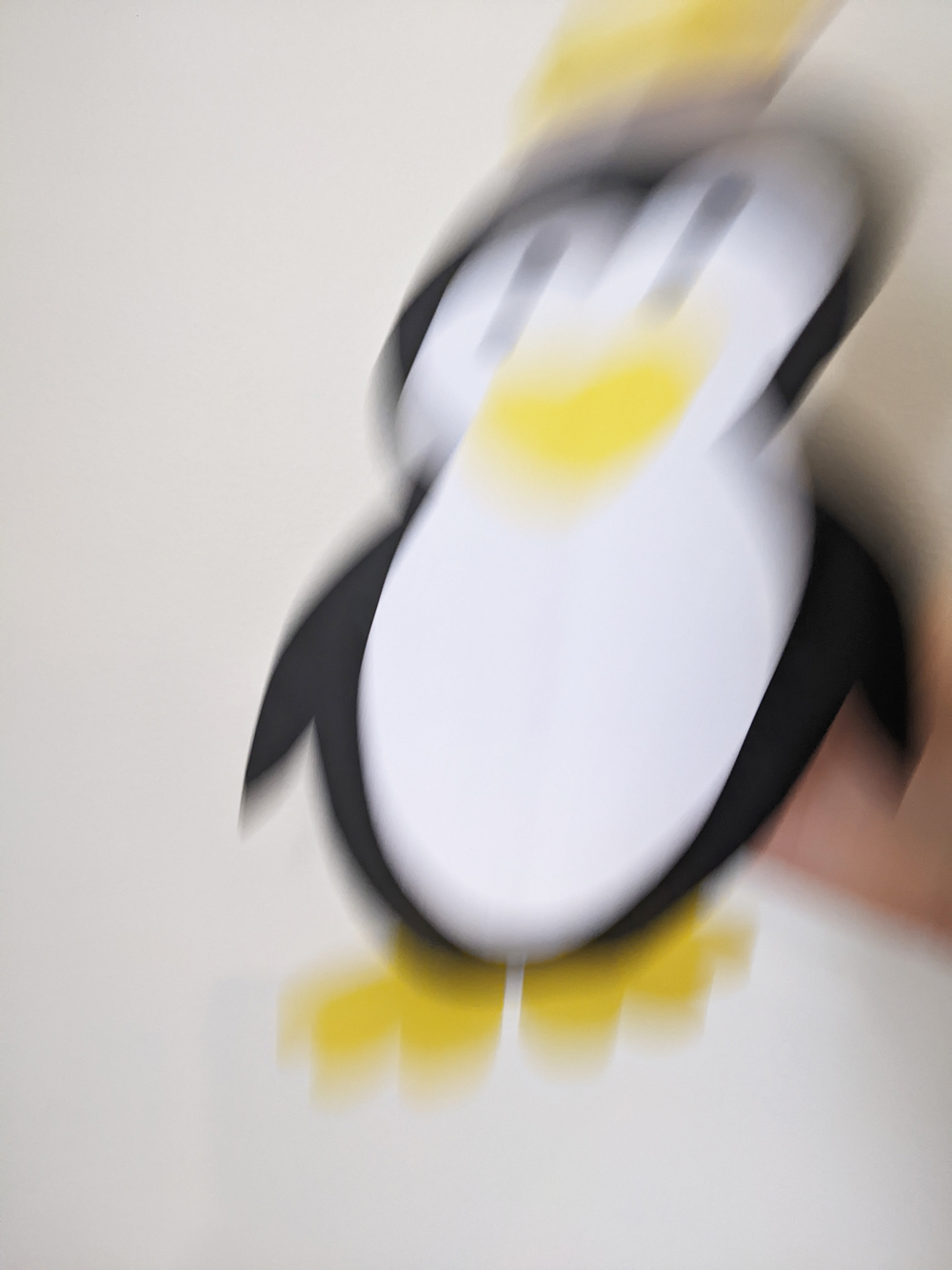Next, cut a smaller penguin shape in the white paper, like we’ve done.