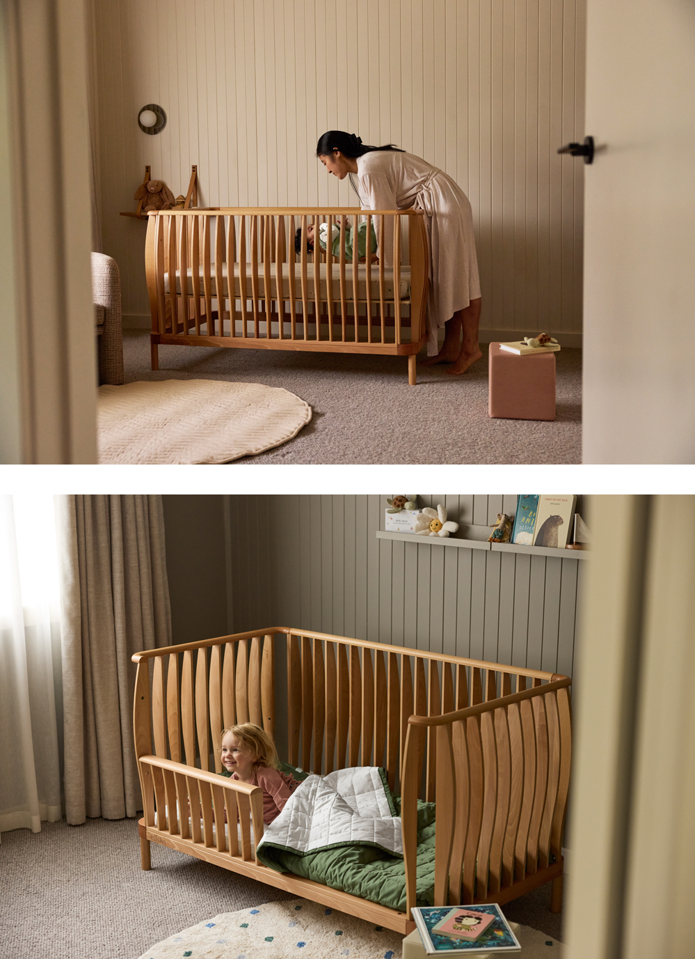 It transforms from infant cot to toddler bed, which means your child can enjoy this serene sleep space all the way from birth to preschool.