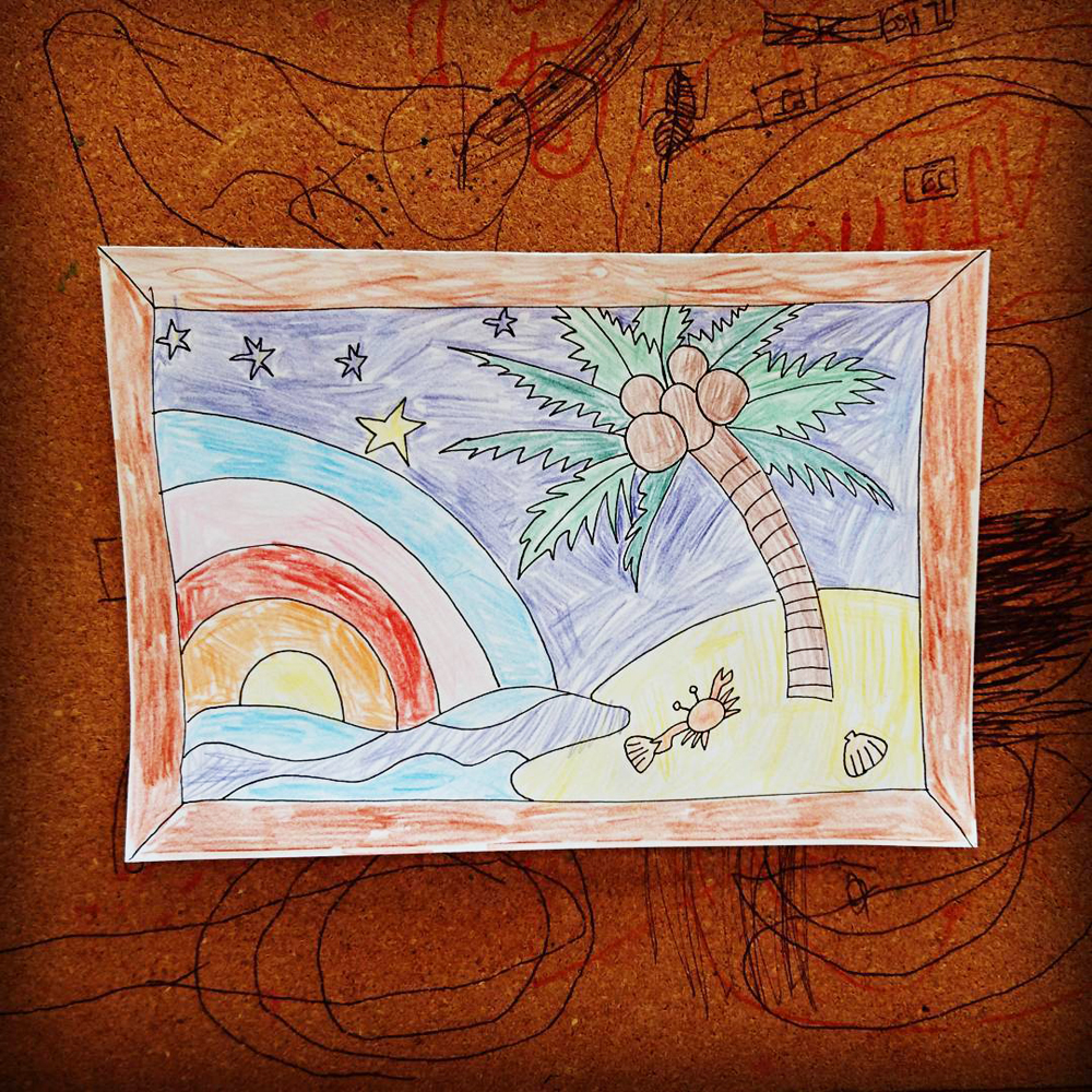 It’s easy to draw the outline of a tree, house, train or tropical vista, which your little one can then colour in.