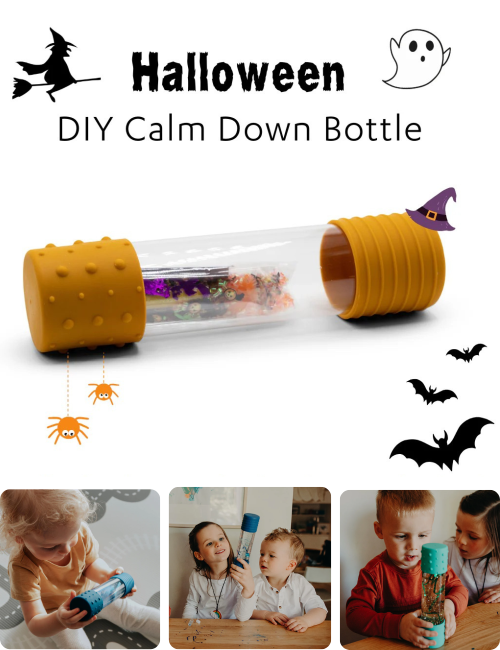 Halloween can get a bit hectic, with all the crazy costumes, sweet treats and randoms knocking on your door, and a Halloween-themed sensory bottle from Jellystone Designs is a great way to take the frazzle out of fright night.