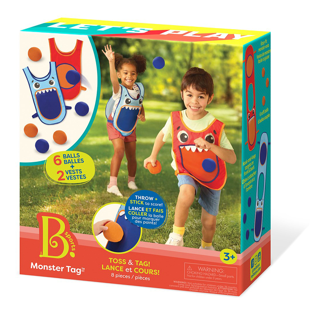 With two monster costumes (ok, vests) and six sticky balls, this toss and tag game is roarsome fun for ages 3+.