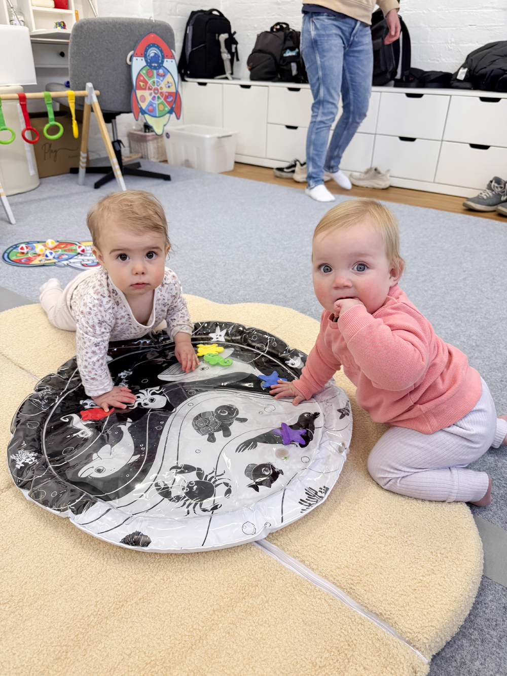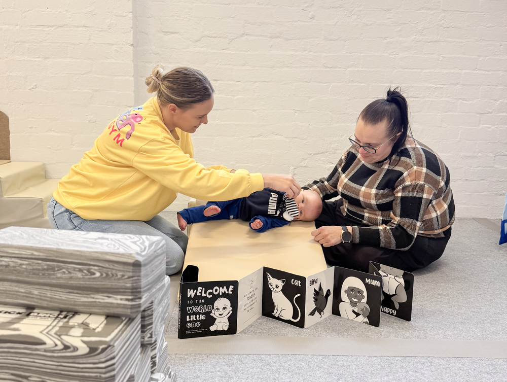 This will encourage them to lift their head, turn and reach, which supports neck strength, shoulder stability, and body awareness.