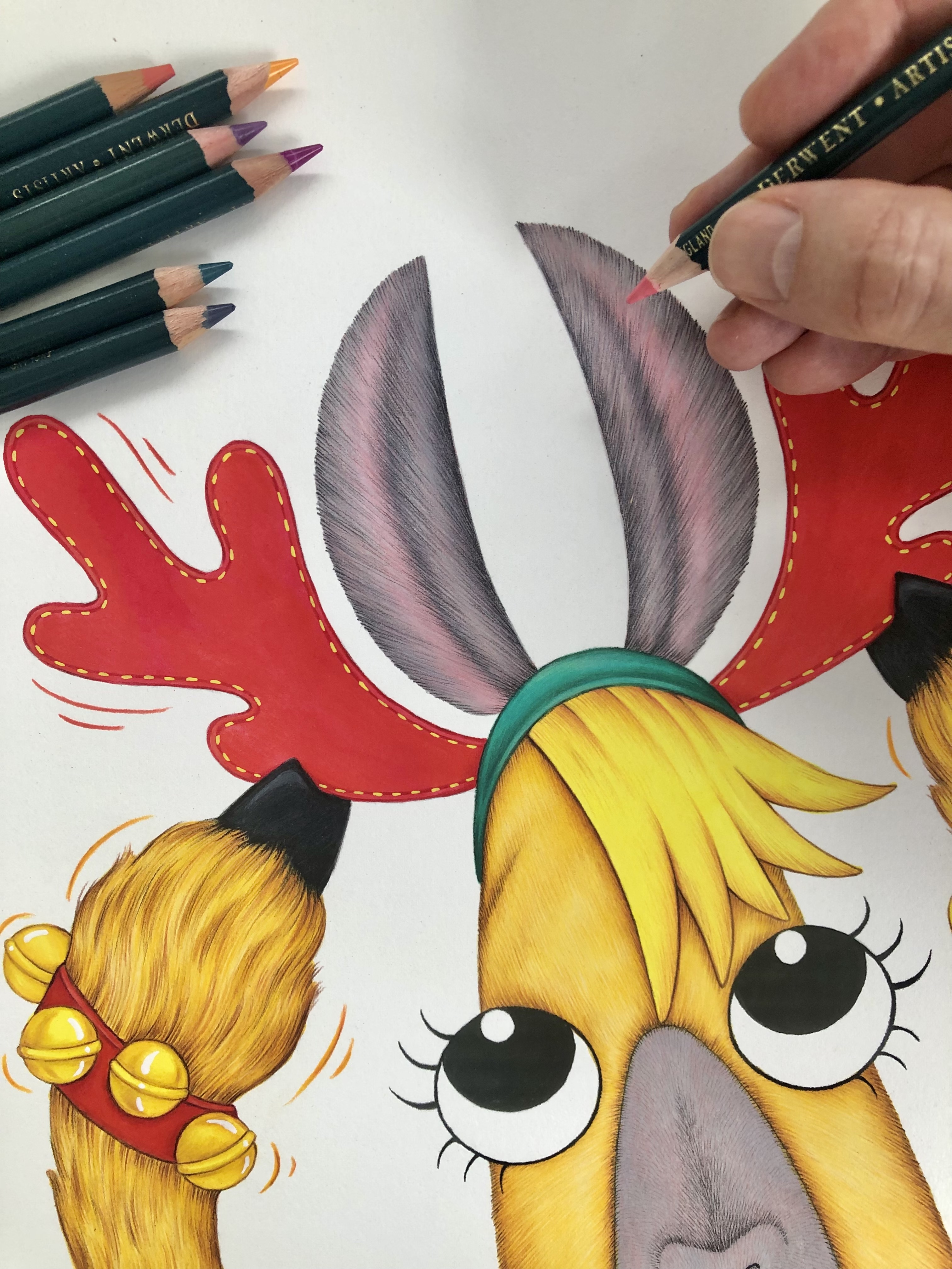 KINDICARE: It looks like you’ve had a lot of fun drawing candy canes, bells, gift boxes and other festive goodies for this story.