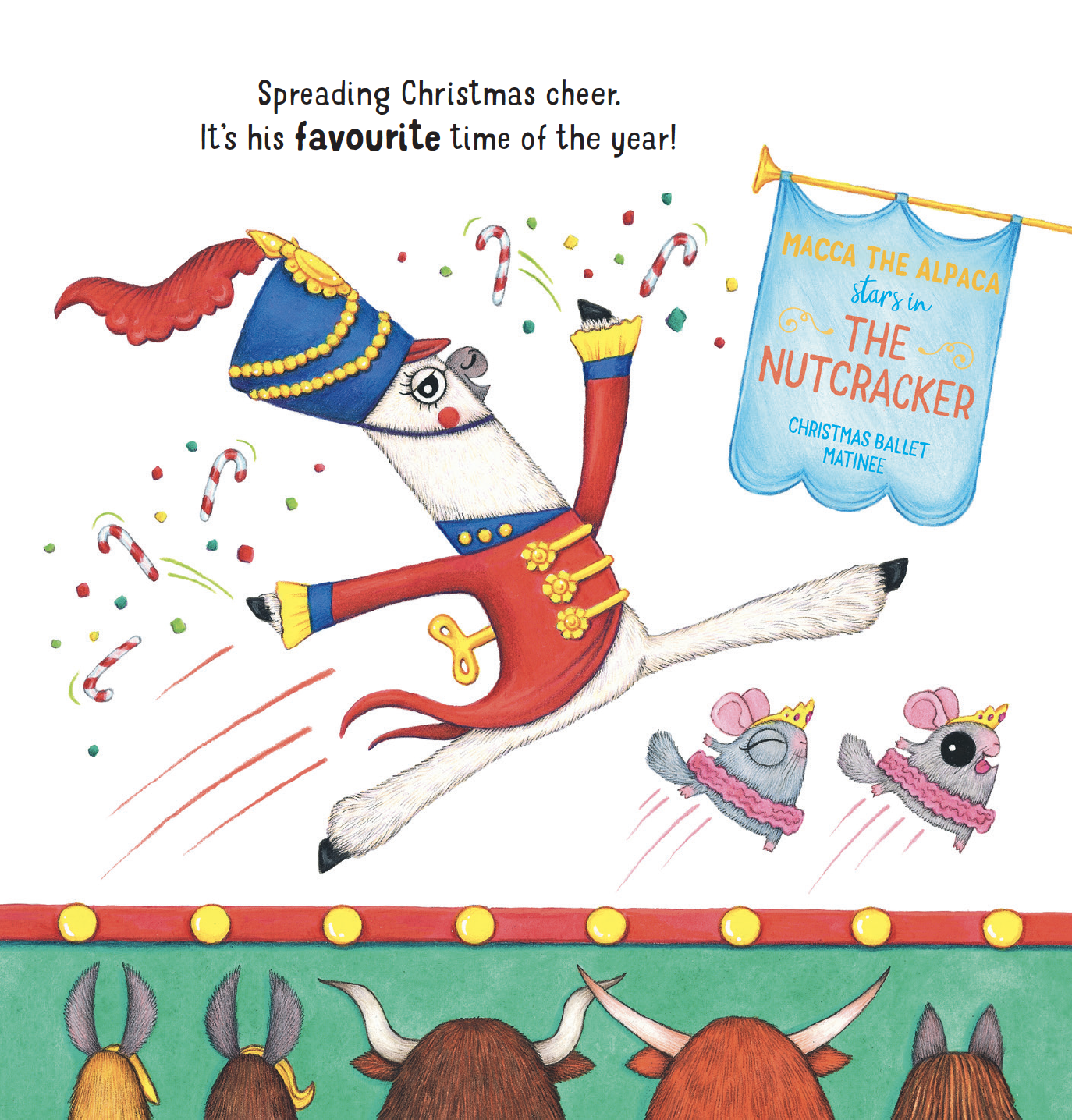MATT: It was such a fun story to bring to life, but I was especially happy that I could finally use the rhyme of ‘Nut Cracker’ with ‘Alpaca’ when Macca performs a Christmas ballet.