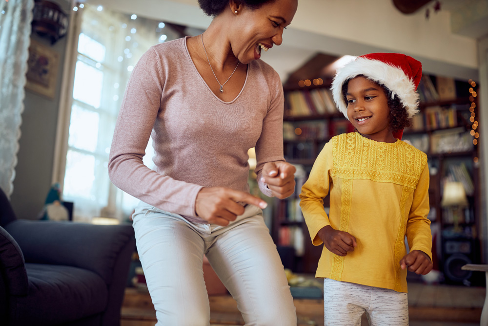 Dancing is a feel-good activity that gets the mind and muscles moving, so put on some upbeat festive music and dance with your child for five to 10 minutes straight.