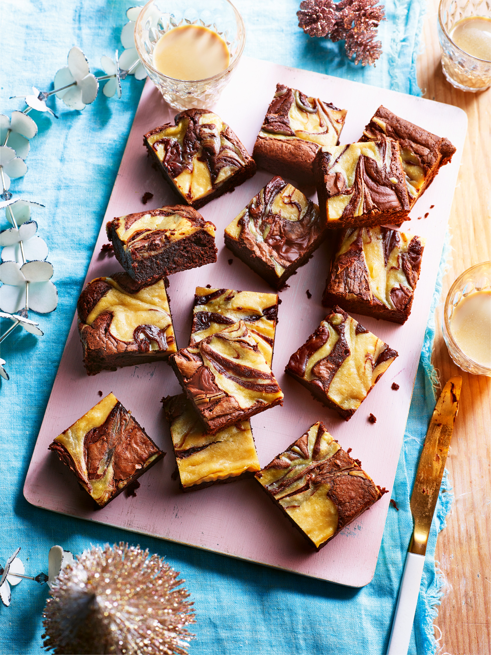 With swirls of chocolate and more than a dash of Irish cream liqueur, these brownies are off-limits for littlies, but totally delish for us grown-ups who are yet to embark on a New Year health kick.