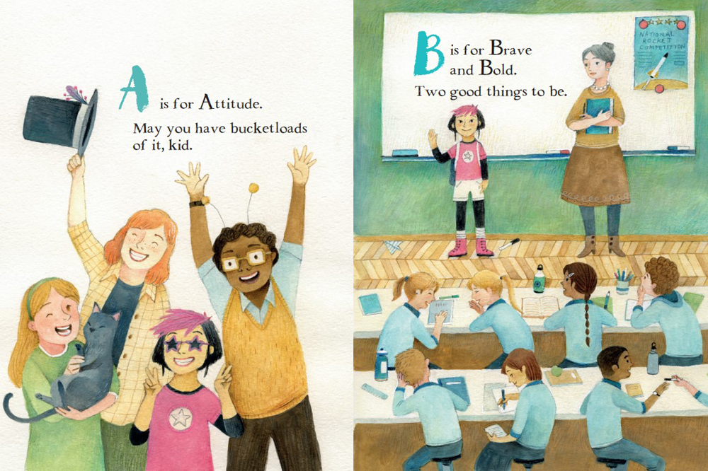The book starts with, ‘A is for Attitude. May you have bucketloads of it, kid,’ and ‘A’ happens to be one of Tracey’s favourite letters for dreaming differently.