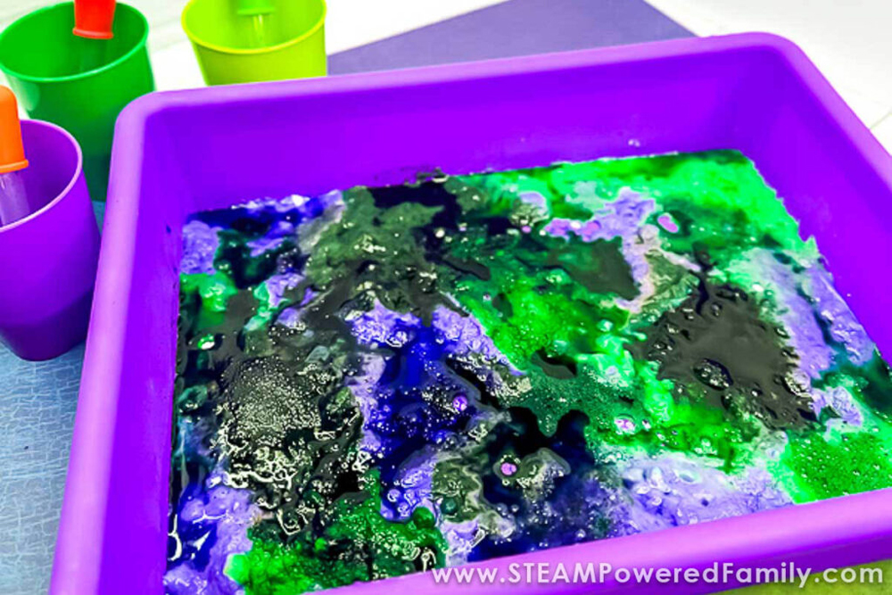 And there’s Science and Art involved when you make a fizzy galaxy picture using baking soda, vinegar, food colouring and paper.