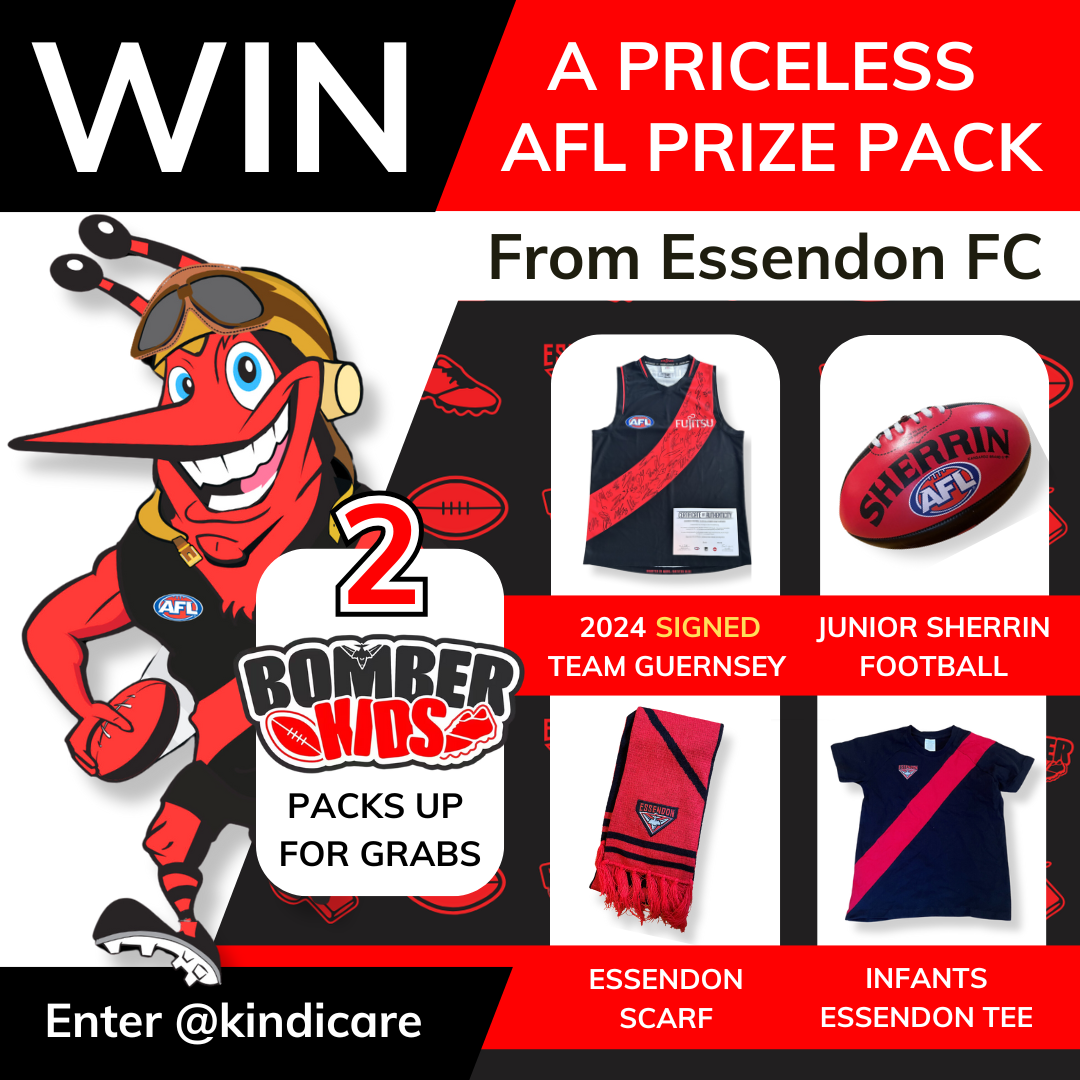 To help you do this, we’ve teamed up with Essendon Football Club to give away two Bomber Kids prize packs that money can’t buy.